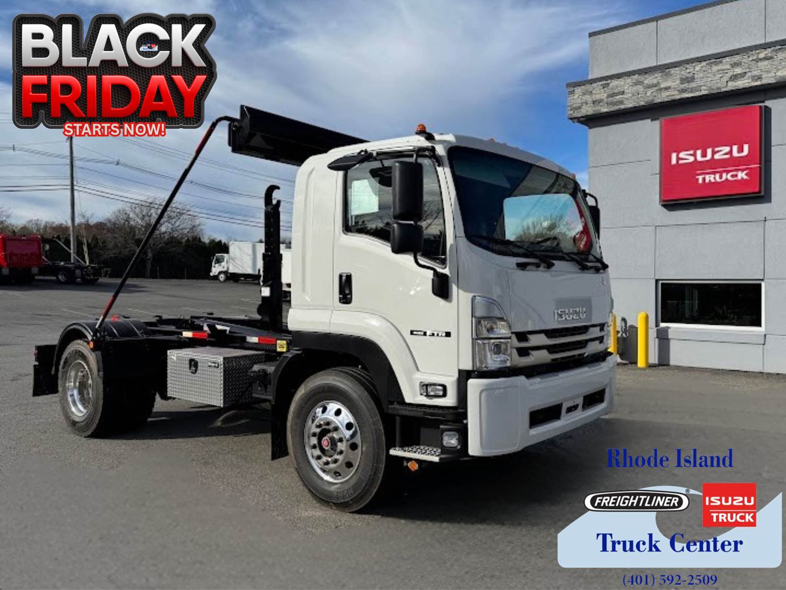*2026 Isuzu FTR* with a *Palfinger HAD-185 Hooklift System* is a versatile, medium-duty truck built for contractors, municipalities, and waste haulers who need power, flexibility, and performance --- *all while staying under the CDL threshold. *.Black Friday.This model is equipped with the *proven 6.7L Cummins diesel engine* delivering 260 HP, and a *reliable Allison 2500RDS automatic transmission*, making it easy to drive and maintain even in tough conditions.----------------------------------------=== Hooklift System Highlights -- Palfinger HAD-185: === * *Adjustable Hook Heights:* 36 / 54 * *Lifting Capacity:* * *18,500 lbs. at 36 hook height* * *20,000 lbs. at 54 hook height* * Compatible with a wide range of container sizes (perfect for contractors, recycling, landscaping, etc.)----------------------------------------=== Additional Equipment & Features: === * *Pioneer HR1500H Electric Tarping System* -- Quick and easy load coverage for safety and compliance * *36 Aluminum Underbody Toolbox* -- Durable and corrosion-resistant for secure storage * *Pintle Hitch with D-Rings* -- Heavy-duty towing capability * *Trailer Light Package* -- Fully wired for tow-behind trailers * *Electric Brake Controller* -- 4-axle capacity, integrated with cab controls for safe trailer operation----------------------------------------Whether you're hauling containers, debris, or material, the *2026 Isuzu FTR with Palfinger HAD-185 Hooklift* delivers dependable performance, strong lifting capacity, and all-around jobsite versatility --- *without requiring a CDL*. Black Friday.