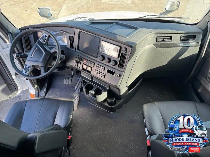 The 2027 Freightliner Generation 5 Cascadia 72 Inch Raised Roof Double Bunk Sleeper represents the next evolution of aerodynamic efficiency, driver comfort, and advanced technology in long haul trucking. The Gen 5 Cascadia builds on Freightliner proven platform with enhanced aerodynamics, improved fuel economy, advanced safety systems, and a refined interior designed to maximize uptime and driver satisfaction. This truck is engineered for fleets and owner operators who demand performance, efficiency, and premium comfort on every mile.This unit is powered by the Detroit DD15 Gen 5 High Power 14.8L engine rated at 505 HP at 1625 RPM with 1750 lb ft of torque at 975 RPM and 1900 governed RPM. It is paired with the Detroit DT12 1750 One Efficient 12 speed overdrive automated manual transmission and a 2.85 rear axle ratio for optimal fuel efficiency and highway performance.The chassis features a Detroit DA F 13.3 13300 lb single front axle with 13300 lb taperleaf front suspension and driver controlled traction differential on the forward tandem. Front and rear brake dust shields are included. A removable front tow recovery device is stored on the chassis frame. A Phillips Temro 1500 watt 115 volt block heater is also equipped.This Cascadia includes a 35 inch flush mounted deck plate, Fontaine No Slack II 6000 Series 24 inch air slide fifth wheel with 2 inch slide increments, and a 2 way heavy duty 150 amp receptacle mounted on the back of cab with a 15 foot detachable coiled heavy duty cable for tractor and trailer connections.Dual 120 gallon aluminum fuel tanks provide extended range, with auxiliary fuel supply and return ports on both tanks. A Detroit fuel water separator with bypass and 12 volt preheater enhances reliability in cold weather conditions.Rolling on Continental HSL 3 295 75R22.5 16 ply radial front tires and Continental HDL3 LTL 295 75R22.5 16 ply radial rear tires, this truck features Accuride Accu Lite 22.5 by 8.25 aluminum disc wheels front and rear with polished finish inside and out.Exterior features include polished step finish, LH and RH baggage doors, Freightliner flange mounted LED stop tail turn backup lights by Truck Lite, dual bright finish heated aerodynamic mirrors with integral convex and remote adjustment, heated bright finish hood and fender mounted mirrors, and factory installed tire pressure monitoring system with wheel rim mounted sensors integrated into the dash. An automatic self adjusting backup alarm rated from 87 to 112 decibels is also included.Inside the spacious 72 inch raised roof sleeper, you will find LH and RH solar tinted screened crank out sleeper windows, microwave shelf with upper storage, built in refrigerator, and both a 40 inch wide liftable lower bunk and foldable upper bunk with quilted spring mattress in the lower and spring mattress in the upper.Comfort is maximized with an auxiliary HVAC system with constant temperature control, Gen 3 Espar AM3 fuel heater with EasyStart Pro controller, operable with key off. The cab is equipped with 120 volt wiring, shore power capability, and an Eaton 1800 watt pure sine wave inverter charger system. A cab privacy curtain with magnetic closure adds additional convenience.The Elite 2.0 high back air suspension driver seat includes 2 air lumbar supports, active bolster, integrated cushion extension, tilt, adjustable shock, map pocket, and both heat and ventilation. The Premium 2.0 high back air suspension passenger seat also includes dual air lumbar, cushion extension, tilt, and adjustable shock. Both seats are finished in Black Laredo leather with dual armrests.A factory installed Uniden PC78LTX CB radio with SWR meter completes this well appointed long haul package.This 2027 Freightliner Gen 5 Cascadia 72 Inch Double Bunk Sleeper delivers industry leading efficiency, premium comfort, and advanced technology designed to keep drivers productive and profitable mile after mile.